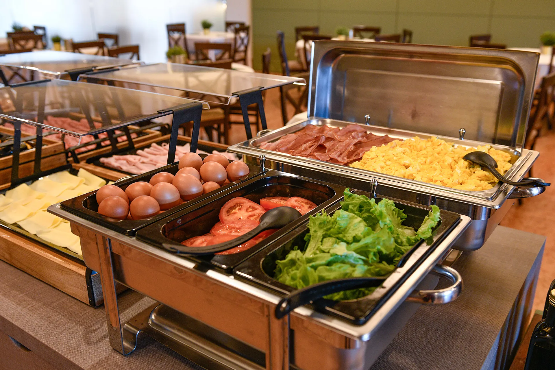 Ogni mattina all’Hotel Garda di Affi ti attende una ricca colazione a buffet continentale, con prodotti freschi e una varietà di proposte dolci e salate. Pane fresco, torte fatte in casa, brioches, marmellate e miele si affiancano a salumi, formaggi, insalate, uova e yogurt preparato al momento. Non mancano frutta fresca di stagione e succhi per iniziare la giornata con energia.